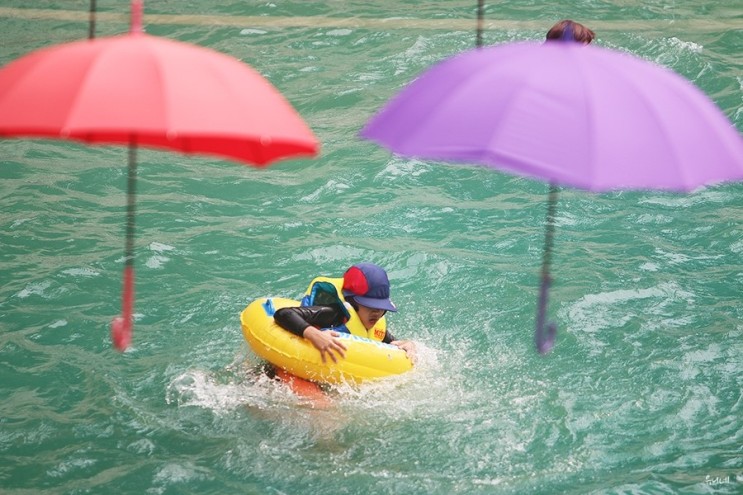 그늘지게 우산도 걸어주는 센스 , 당장이라도 물에 뛰어들고 싶었답니다.