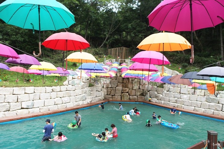 강진의 명산 보은산 일원의 강진 V-랜드물놀이장은 여러 깊이의 풀이 마련되어 있습니다.
